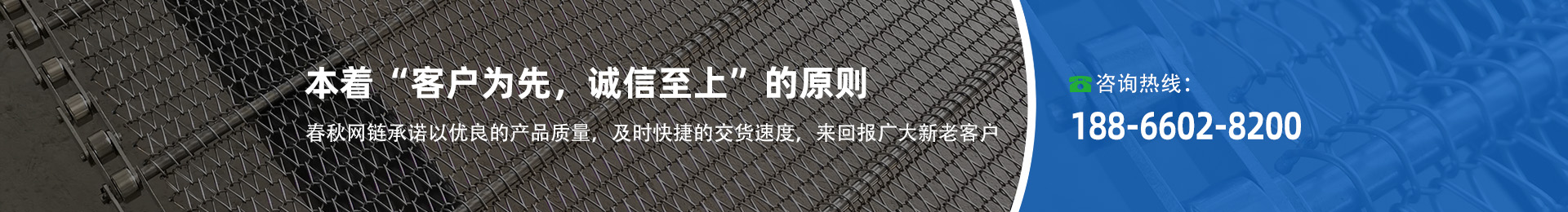 寧津春秋網(wǎng)鏈設(shè)備有限公司專注生產(chǎn):金屬網(wǎng)帶,烘干機網(wǎng)帶,支軸鏈,清洗機網(wǎng)鏈,不銹鋼網(wǎng)鏈,乙字型網(wǎng)帶,不銹鋼鏈板,沖孔鏈板,提升式鏈板,排屑機鏈板,平板鏈,眼睛網(wǎng)帶,鏈片式網(wǎng)帶,鏈板輸送機,網(wǎng)帶輸送機,馬蹄鏈(長城網(wǎng)帶),輸送鏈條,傳動鏈條,大滾珠雙節(jié)距鏈條,非標(biāo)鏈條,鏈輪等輸送設(shè)備及配件。亦可根據(jù)客戶需求,設(shè)計,定制,各種流水線等,是集新產(chǎn)品的研發(fā)、制造、銷售于一體的生產(chǎn)型企業(yè)……
